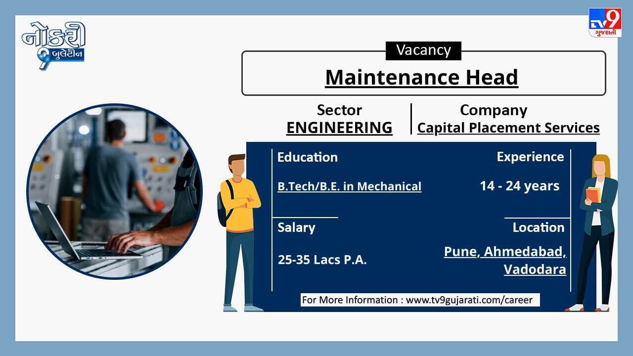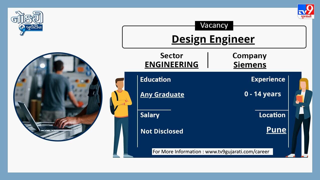 ધોરણ 10 કે 12 પાસ કે સ્નાતક થયેલા લોકો માટે નોકરીની ઉતમ તકો (Job Vacancy) સર્જાઈ છે, એન્જિનિયરિંગ ક્ષેત્રે નોકરી શોધી રહેલા ઉમેદવારો આ લીંક પર ક્લિક કરો. સ્નાતકોને મહિને 2,90,000થી વધુ પગાર મળશે.