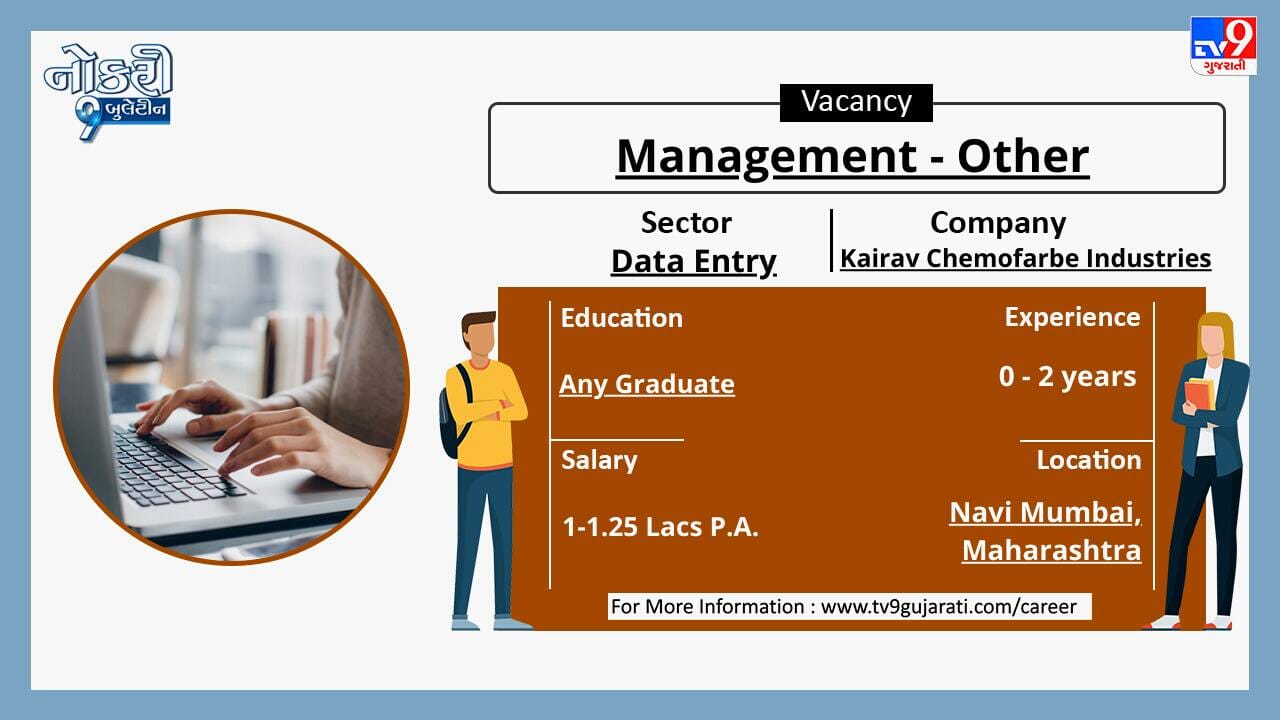 ધોરણ 10 કે 12 પાસ કે સ્નાતક થયેલા લોકો માટે નોકરીની ઉતમ તકો (Job Vacancy) સર્જાઈ છે, ડેટા એન્ટ્રીમાં નોકરી શોધી રહેલા ઉમેદવારો આ લીંક પર ક્લિક કરો. ધોરણ 10 કે 12 પાસ લોકો માટે મહિને ડેટા એન્ટ્રીમાં 33,000થી વધુ પગાર મળશે.