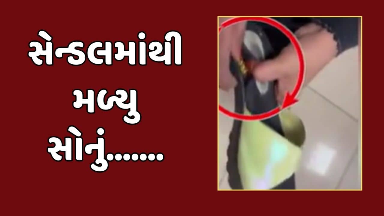 આંતરાષ્ટ્રીય મુસાફરી કરતા યાત્રિકો પાસેથી ગેરકાનૂની સોનુ ઝડપાવાનાં કિસ્સા અનેકવાર સામે આવે છે. આવી ઘટના ફરી એકવાર બની છે. સ્પાઈસજેટના એક ભારતીય મુસાફરે ગેરકાયદે સોનુ ભારતમાં લાવવા માટે એક અલગ જ કીમિયો અપનાવ્યો અને ઝડપાઈ ગયો. દ્રશ્યોમાં જોઈ શકાય છે તેમ સેન્ડલમાં સોનાની ચેઈન મળી આવી છે. આશ્ચર્યજનક ઘટના બની છે.