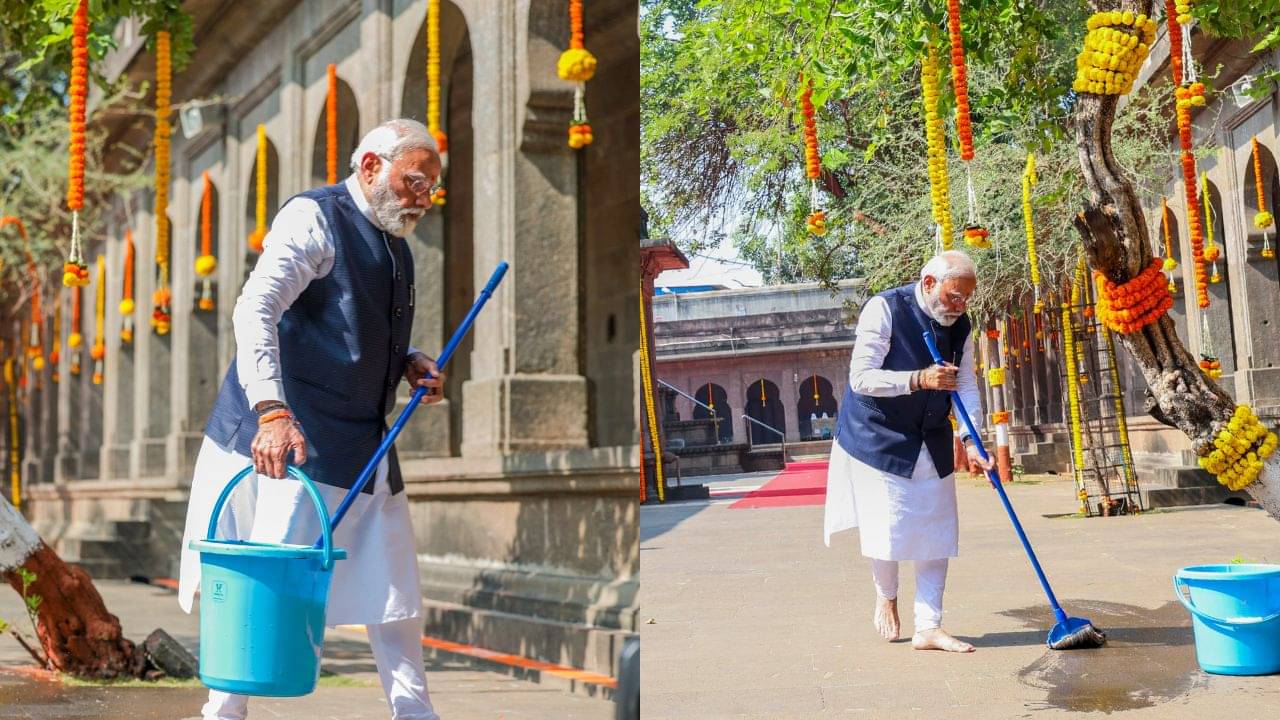નાસિકના કાલારામ મંદિરમાં વડપ્રધાન મોદીએ કરી સાફ સફાઈ, આપ્યો સ્વચ્છતાનો સંદેશ, જુઓ વીડિયો