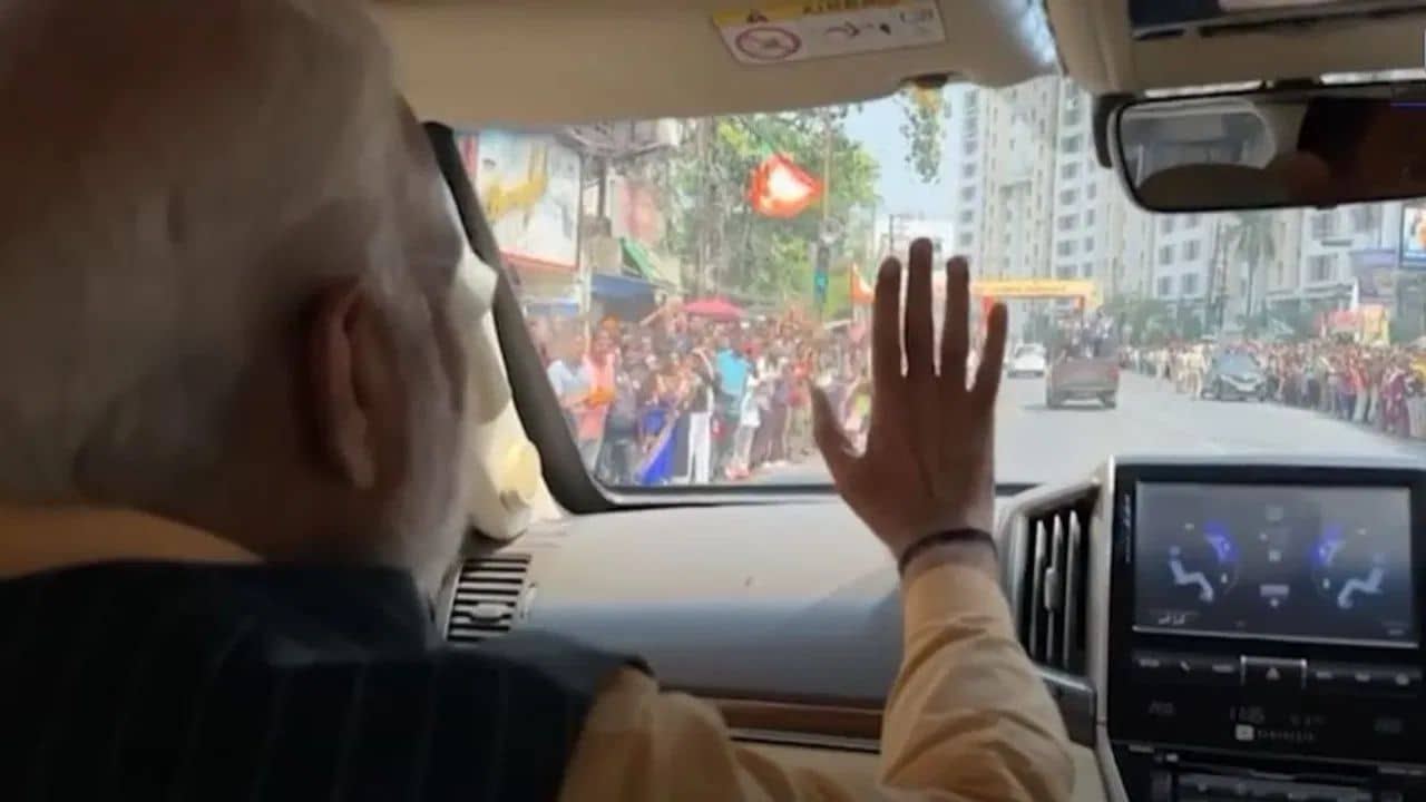 પશ્ચિમ બંગાળમાં વડાપ્રધાન નરેન્દ્ર મોદીનું ભવ્ય સ્વાગત, રોડ શોમાં ઉમટ્યા લોકો, જુઓ Video