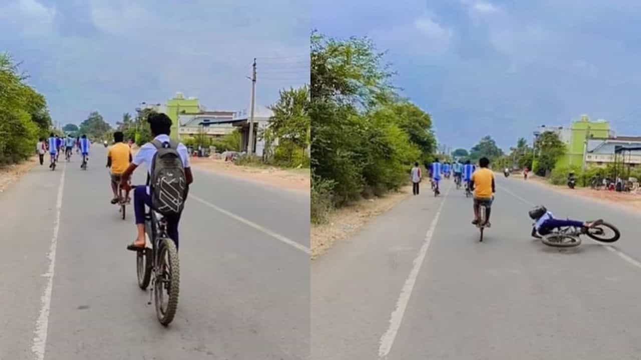 વાયરલ થઈ રહેલા વીડિયોમાં જોઈ શકાય છે કે બે છોકરાઓ સાઈકલ(Bicycle) પર જઈ રહ્યા છે. એક છોકરો સાયકલને ઓવરટેક કરીને આગળ નીકળી જાય છે, બાદમાં તેનો મિત્ર તેને ઓવરટેક કરવા ગજબનો સ્ટંટ કરતો જોવા મળે છે. આ સ્ટંટના ચક્કમાં તે રસ્તા વચ્ચે જ ધડામ દઈને નીચે પડે છે.જો કે સદનસીબે કોઈ વાહન ન આવતુ હોવાથી આ છોકરો બચી ગયો હતો.યુઝર્સ આ વીડિયોને (Video)શેર કરી રહ્યા છે અને પોતાની પ્રતિક્રિયા આપતા જોવા મળી રહ્યા છે.