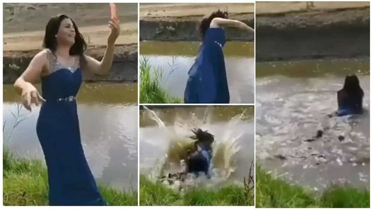 દરમિયાન કૂદતી વખતે તેના પગનું સંતુલન બગડતાં તે કેનાલમાં પડી હતી અને પાણીમાં પડી જવાથી યુવતીનો મોબાઈલ અને ડ્રેસ સંપૂર્ણ રીતે બગડી ગયો હતો. યુવતી નહેરમાં પડી ગયા પછી, તેના ચહેરા પરના હાવભાવ સંપૂર્ણપણે બદલાઈ જાય છે.