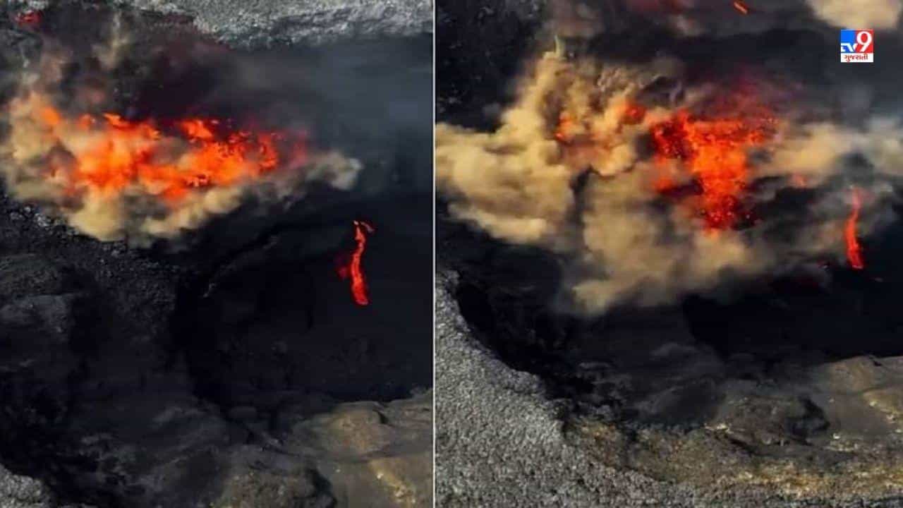 આ વીડિયોમાં તમે જોઈ શકો છો કે જ્વાળામુખીના ખાડાનો એક મોટો ભાગ અચાનક પડી જાય છે, જેમાંથી ભયાનક લાવા અને ધુમાડો નીકળતો જોવા મળે છે. તમને જણાવી દઈએ કે હોરુર ક્રિસ્ટાલેફસન નામના ફોટોગ્રાફરે ડ્રોન (Drone) વડે આ દ્રશ્યને પોતાના કેમેરામાં કેદ કર્યો હતો. જ્વાળામુખીનો આ વીડિયો જોઈને દરેક લોકો આશ્ચર્યચકિત થઈ ગયા છે.