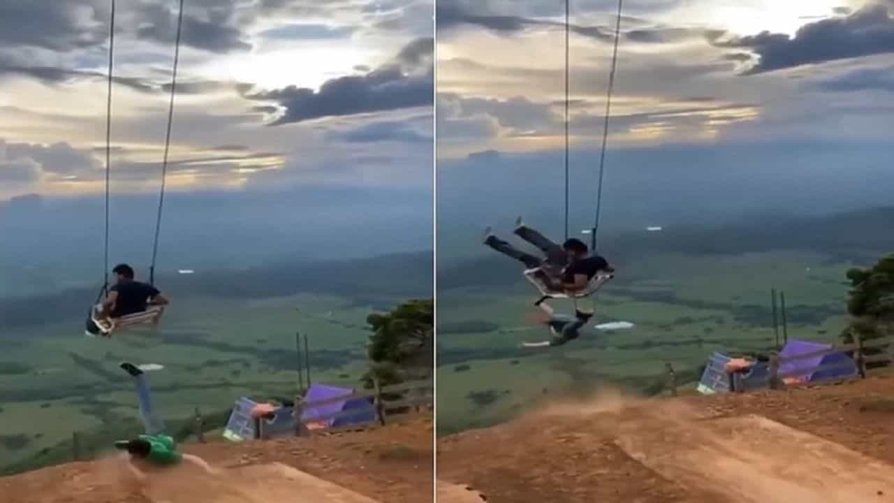 ઈન્ટરનેટ પર વાયરલ થઈ રહેલા આ વીડિયોમાં તમે જોઈ શકો છો કે કેવી રીતે એક વ્યક્તિ તેના મિત્રને ઝુલાવી રહ્યો છે. આ ઝુલો ઊંડા ખાડાની(Ditch) ધાર પર બાંધવામાં આવ્યો છે. તે ઝુલાને આગળ ધકેલે છે, જેથી તેનો મિત્ર સારી રીતે ઝુલે ઝુલી શકે, પરંતુ પછી અચાનક તેનો પગ ધાર પર લપસી જાય છે. જો કે, સદનસીબે તેનો પગ દોરડામાં અટવાઈ જતા તે ખાઈમાં પડતો બચી જાય છે. આ વીડિયો હાલ સોશિયલ મીડિયા(Social Media) પર ખુબ વાયરલ થઈ રહ્યો છે.