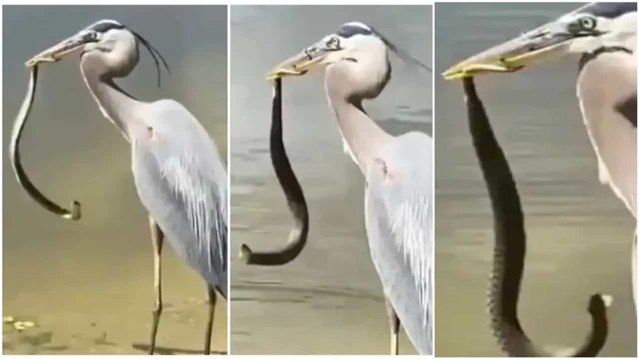 વીડિયોમાં તમે જોઈ શકો છો કે બગલા જેવા પક્ષીએ સાપને તેની ચાંચમાં દબાવ્યો છે અને આ દરમિયાન પક્ષી પણ સાપને હલાવતું જોવા મળે છે. સાપ પક્ષીની પકડમાંથી બહાર નીકળવાનો પૂરો પ્રયાસ કરે છે, પરંતુ તેને સફળતા મળતી નથી. આમાં, પક્ષી સાપને તેની ચાંચમાં દબાવી દે છે અને બીજા છેડે જઈને ઘાસ પર બેસે છે.