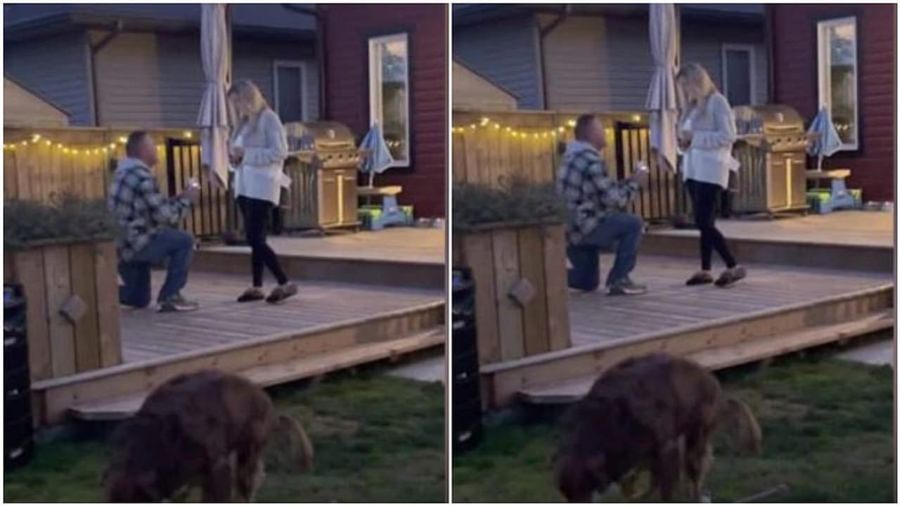 જ્યારે પણ કોઈ બોયફ્રેન્ડ તેની ગર્લફ્રેન્ડને પ્રપોઝ કરે છે, ત્યારે તે તેનામાં કોઇ કમી રાખવા માંગતો નથી, તે તમામ તૈયારીઓ અગાઉથી કરે છે જેથી તે ખાસ ક્ષણ દરમિયાન તેને કોઈ સમસ્યાનો સામનો ન કરવો પડે, પણ હાલમાં જે વીડિયો સામે આવ્યો છે તેમાં છોકરો તેની ગર્લફ્રેન્ડને લગ્ન માટે પ્રપોઝ કરી રહ્યો છે, તે જ સમયે એક કૂતરો એવી રીતે વર્તે છે કે તેને પ્રપોઝલ રોકવું પડે છે.