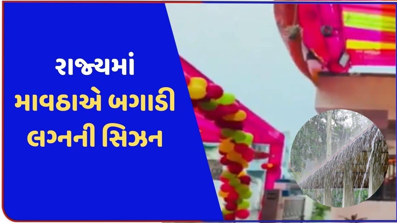 ગુજરાત રાજ્યના મોટાભાગના શહેરો હાલ ભારે પવન સાથે વરસાદ વરસી રહ્યો છે. વેસ્ટર્ન ડિસ્ટબન્સના કારણે રાજ્યના વાતાવરણમા પલટો આવ્યો છે જેના કારણે વહેલી સવારથી જ અનેક જગ્યાએ કમોસમી વરસાદ વરસી રહ્યો છે. એક તરફ શિયાળો શરુ થતા લગ્નની સિઝન પણ ચાલી રહી છે. આ દરમિયાન ઘણા લગ્નપ્રસંગો તેમજ યજ્ઞો પણ યોજાતા હોય છે ત્યારે માવઠાએ લગ્ન અને યજ્ઞ સહીતના શુભ પ્રસંગોની મજા બગાડી છે.