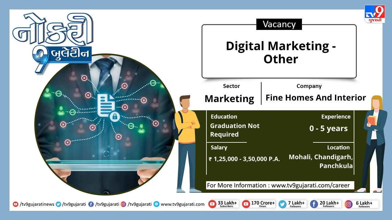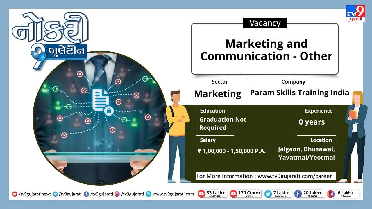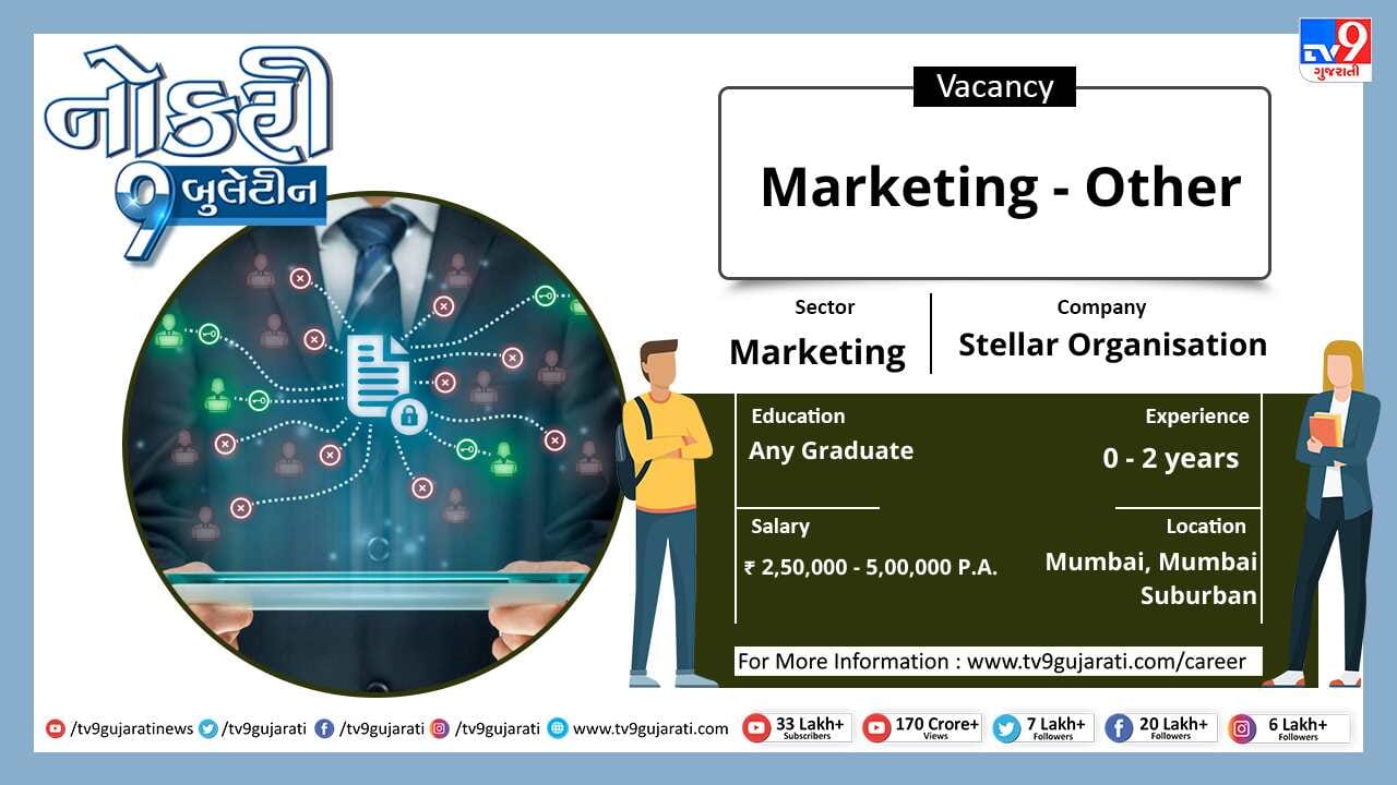 સ્નાતક થયેલા લોકો માટે નોકરીની ઉતમ તકો (Job Vacancy) સર્જાઈ છે, માર્કેટીંગ ક્ષેત્રે નોકરી શોધી રહેલા ઉમેદવારો આ લીંક પર ક્લિક કરો અને મેળવો પોતાના ક્ષેત્ર વિશેની નોકરીની વિગતો સાથે પગાર, લાયકાત અને ધારાધોરણ.