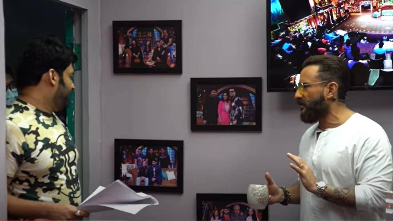 વીડિયોમાં સૈફ, યામી અને જેક્લીન ગ્રીન રૂમમાં જોવા મળી રહ્યા છે. સૈફ પૂછે છે કે કપિલ ક્યાં છે, તે હજી આવ્યો નથી. ત્યાં સુધીમાં કપિલ ગ્રીન રૂમમાં આવે છે અને ત્રણેય સેલેબ્સ હાય હેલ્લો કરે છે. સૈફ કપિલને કહે છે કે હું સેટના ડિઝાઈનરથી ખૂબ જ નારાજ છું.