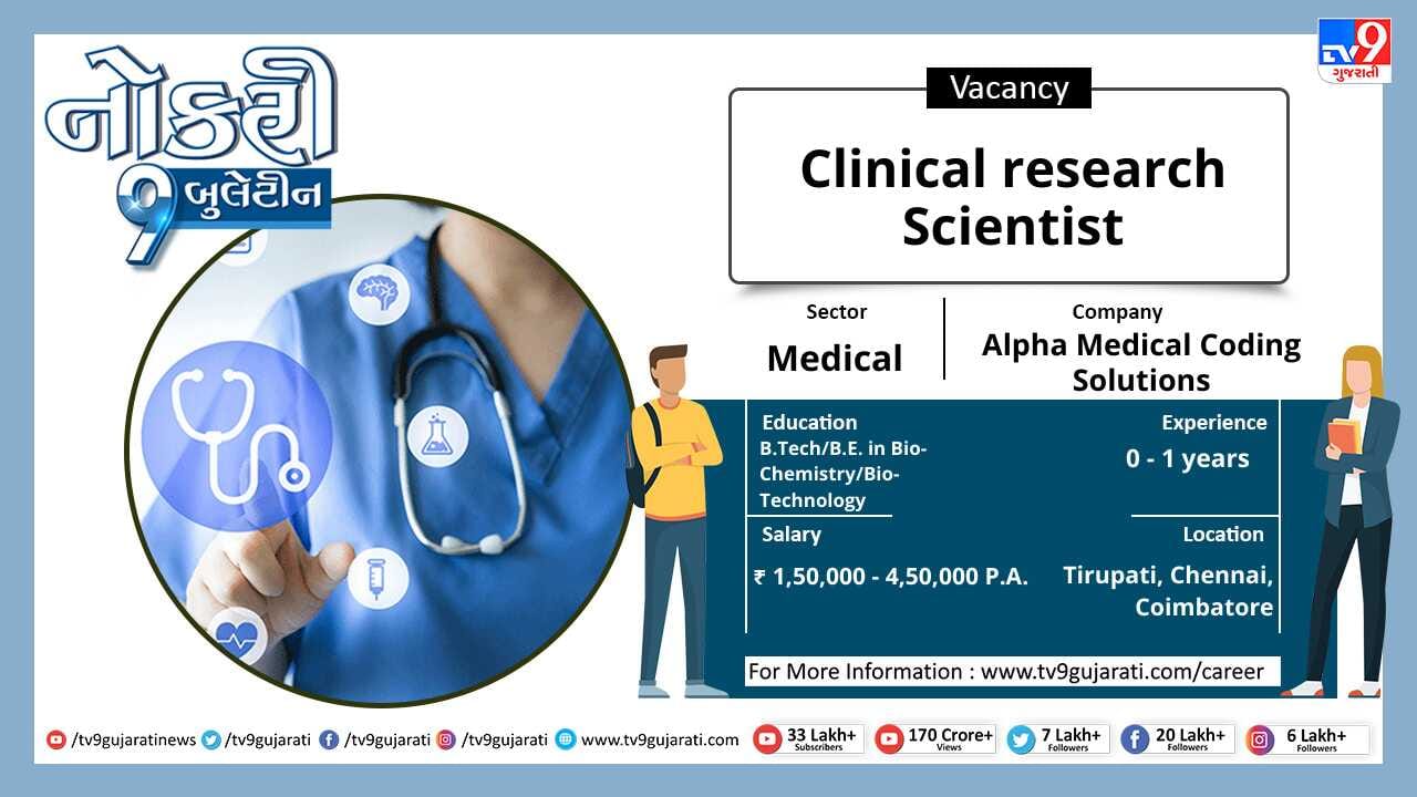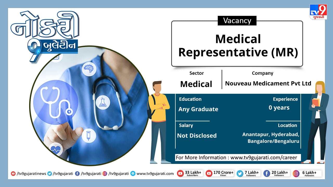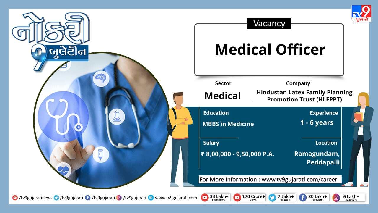 સ્નાતક થયેલા લોકો માટે નોકરીની ઉતમ તકો (Job Vacancy) સર્જાઈ છે, મેડીકલ ક્ષેત્રે નોકરી શોધી રહેલા ઉમેદવારો આ લીંક પર ક્લિક કરો અને મેળવો પોતાના ક્ષેત્ર વિશેની નોકરીની વિગતો સાથે પગાર, લાયકાત અને ધારાધોરણ.