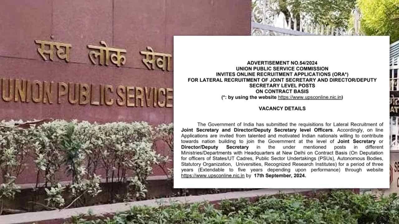 કેન્દ્ર સરકારે યુપીએસસી દ્વારા લેટરલ એન્ટ્રી દ્વારા ઉચ્ચ હોદ્દા પર નિમણૂક કરવાના મામલે યુ-ટર્ન લીધો છે. કર્મચારી વિભાગના રાજ્યકક્ષાના પ્રધાન જિતેન્દ્ર સિંહે UPSCને પત્ર લખીને નિર્ણય પાછો ખેંચવા કહ્યું છે. કહેવામાં આવી રહ્યું છે કે જીતેન્દ્ર સિંહના આ પત્ર પછી UPSC નોટિફિકેશન પાછું ખેંચવાનો ઔપચારિક આદેશ જાહેર કરશે. ત્રણ દિવસ પહેલા, યુપીએસસીએ સંયુક્ત સચિવ અને નિયામક સ્તરની 45 જગ્યાઓ માટે લેટરલ એન્ટ્રી દ્વારા ભરતી માટેની જાહેરાત બહાર પાડી હતી.