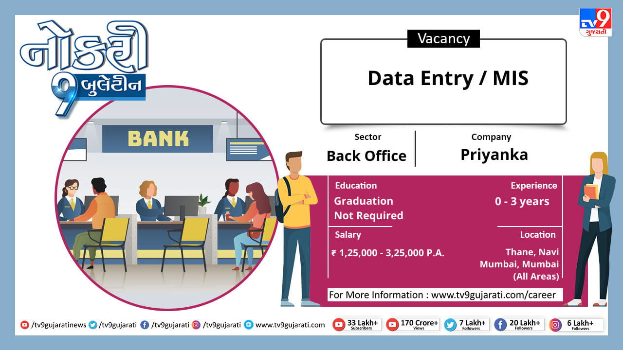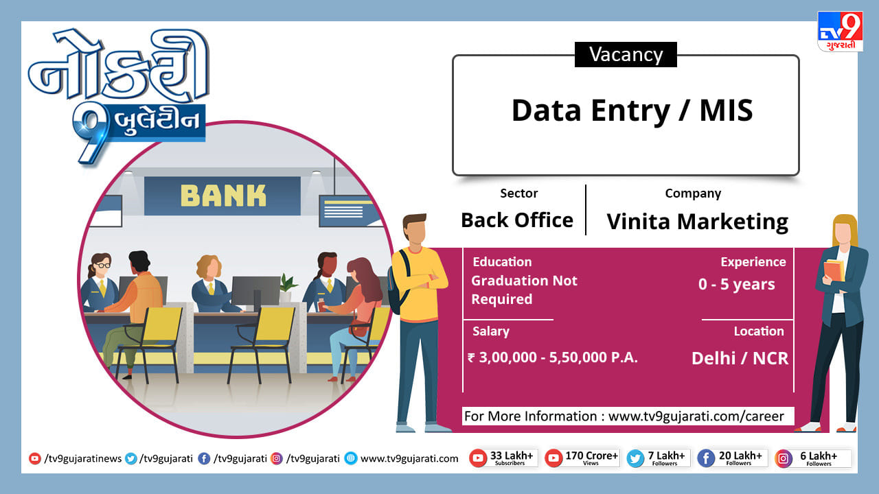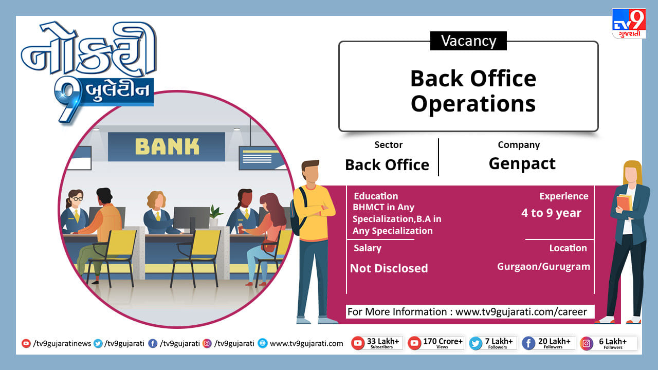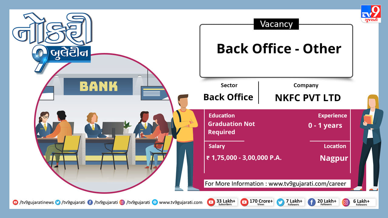 સ્નાતક થયેલા લોકો માટે નોકરીની ઉતમ તકો (Job Vacancy) સર્જાઈ છે, બેક ઓફીસ ક્ષેત્રે નોકરી શોધી રહેલા ઉમેદવારો આ લીંક પર ક્લિક કરો અને મેળવો પોતાના ક્ષેત્ર વિશેની નોકરીની વિગતો સાથે પગાર, લાયકાત અને ધારાધોરણ.