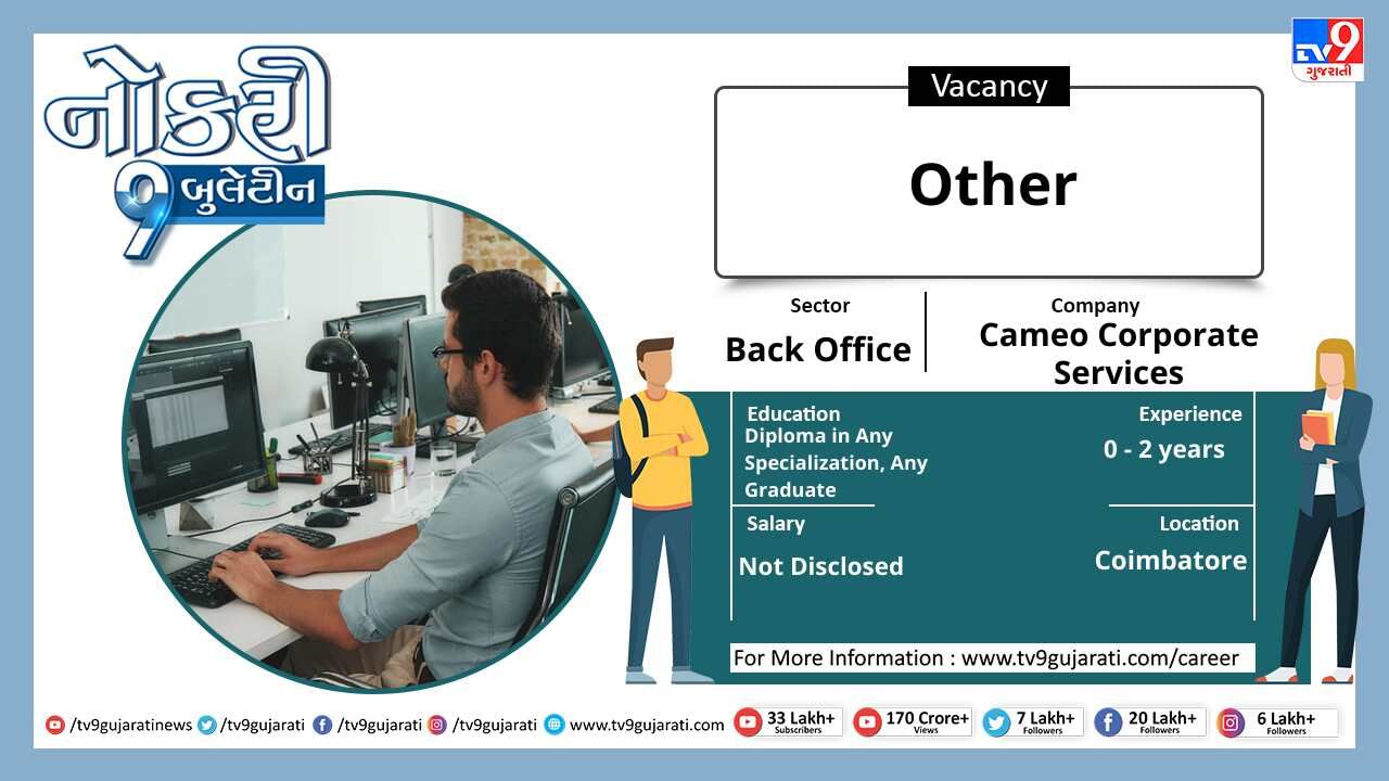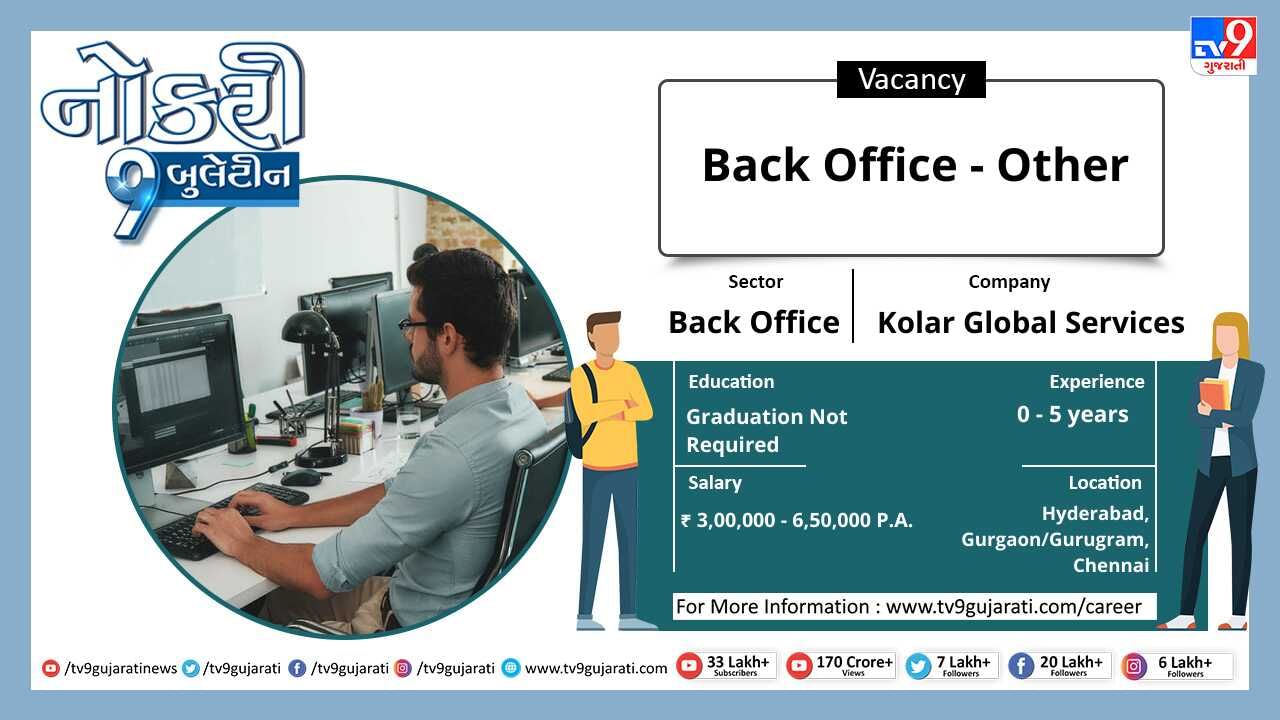 સ્નાતક થયેલા લોકો માટે નોકરીની ઉતમ તકો (Job Vacancy) સર્જાઈ છે, બેક ઓફીસમાં નોકરી શોધી રહેલા ઉમેદવારો આ લીંક પર ક્લિક કરો અને મેળવો પોતાના ક્ષેત્ર વિશેની નોકરીની વિગતો સાથે પગાર, લાયકાત અને ધારાધોરણ.