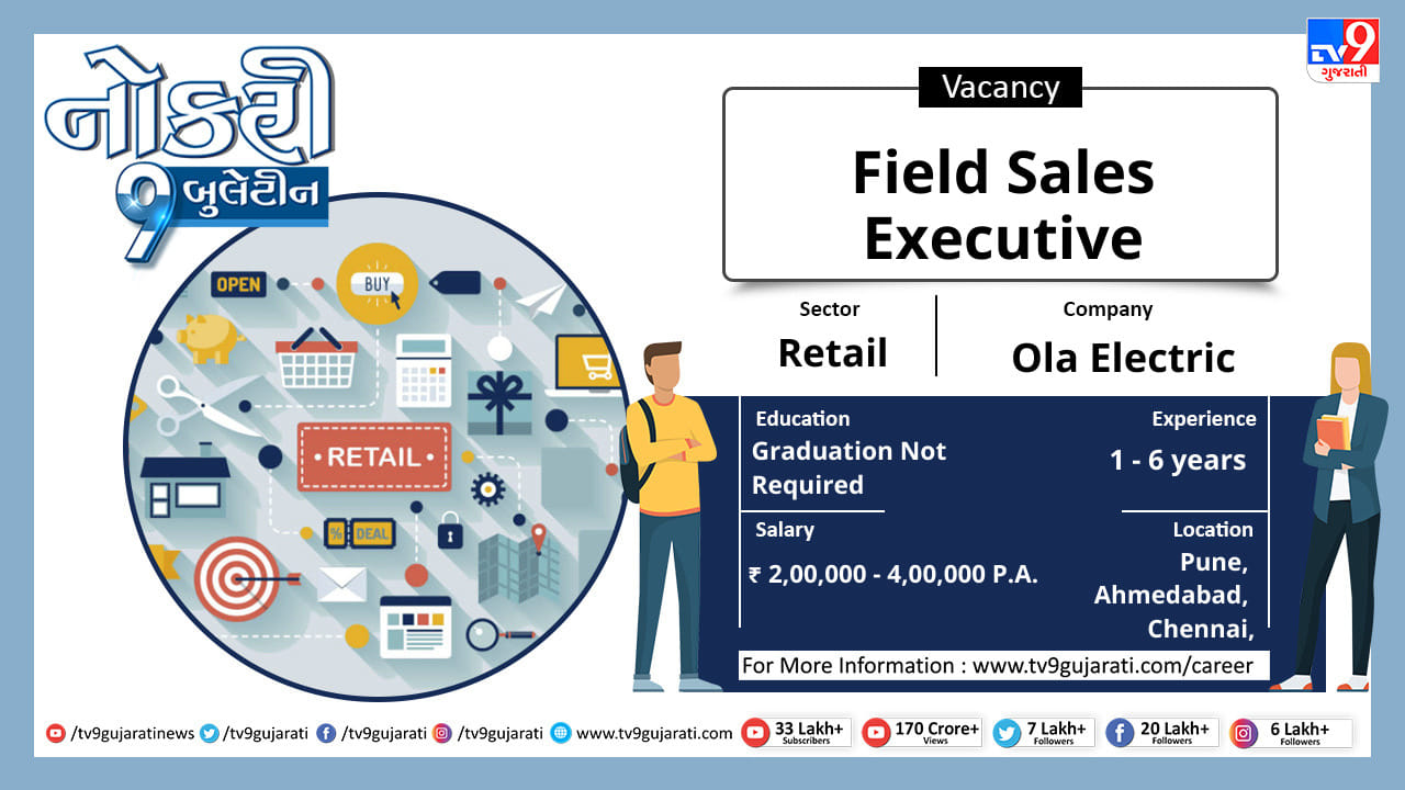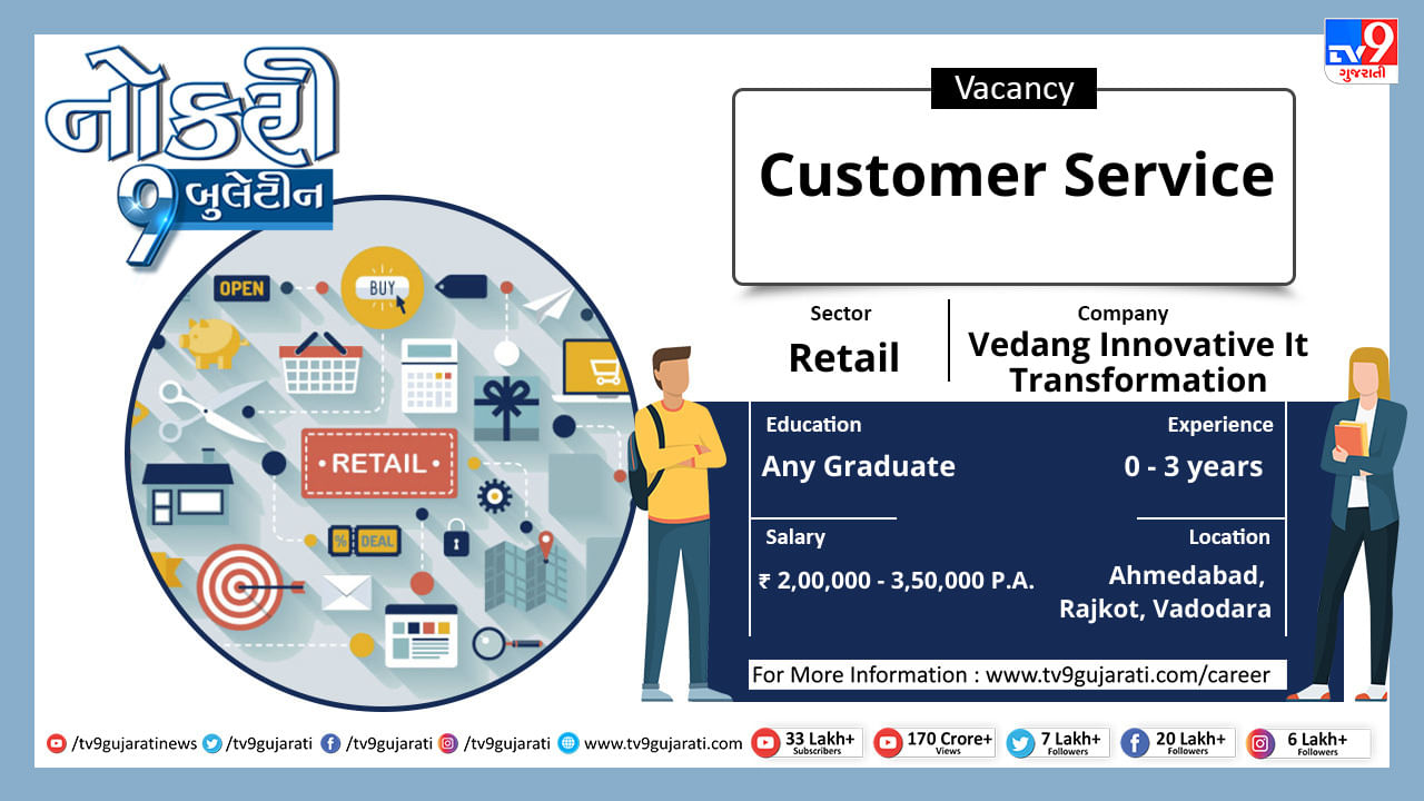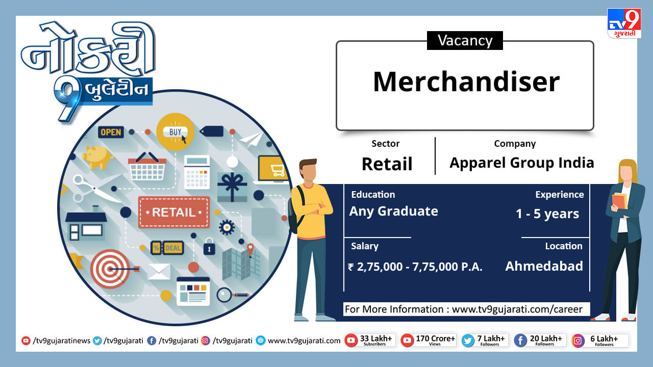 સ્નાતક થયેલા લોકો માટે નોકરીની ઉતમ તકો (Job Vacancy) સર્જાઈ છે, રીટેલ ક્ષેત્રે નોકરી શોધી રહેલા ઉમેદવારો આ લીંક પર ક્લિક કરો અને મેળવો પોતાના ક્ષેત્ર વિશેની નોકરીની વિગતો સાથે પગાર, લાયકાત અને ધારાધોરણ.