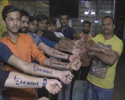 ટેટુના આ ચિતરામણનો ક્રેઝ પણ વડાપ્રધાન નરેન્દ્ર મોદીએ આપેલા સુત્ર ‘મેં ભી ચોકીદાર હુ’થી પ્રેરાઈને આ સુત્રને પોતાના શરીર પર જ ચિતરાવી દીધા છે. એક તરફ યુવાનો સોશિયલ મીડિયામાં તો હાલમાં ‘મોદી હૈ તો મુમકીન હૈ’ અને ‘મેં ભી ચોકીદાર હુ’ના સ્લોગનને ખુબ ફેલાવી રહ્યા છે. હવે તે સુત્ર મોબાઈલની સ્ક્રીન પર જ નહી પણ યુવાનોના શરીર પર જોવા મળી રહેતા યુવાનોમાં પણ ચૂંટણીને લઈને ઈલેકશન ફીવર જોવા મળી રહ્યો છે.