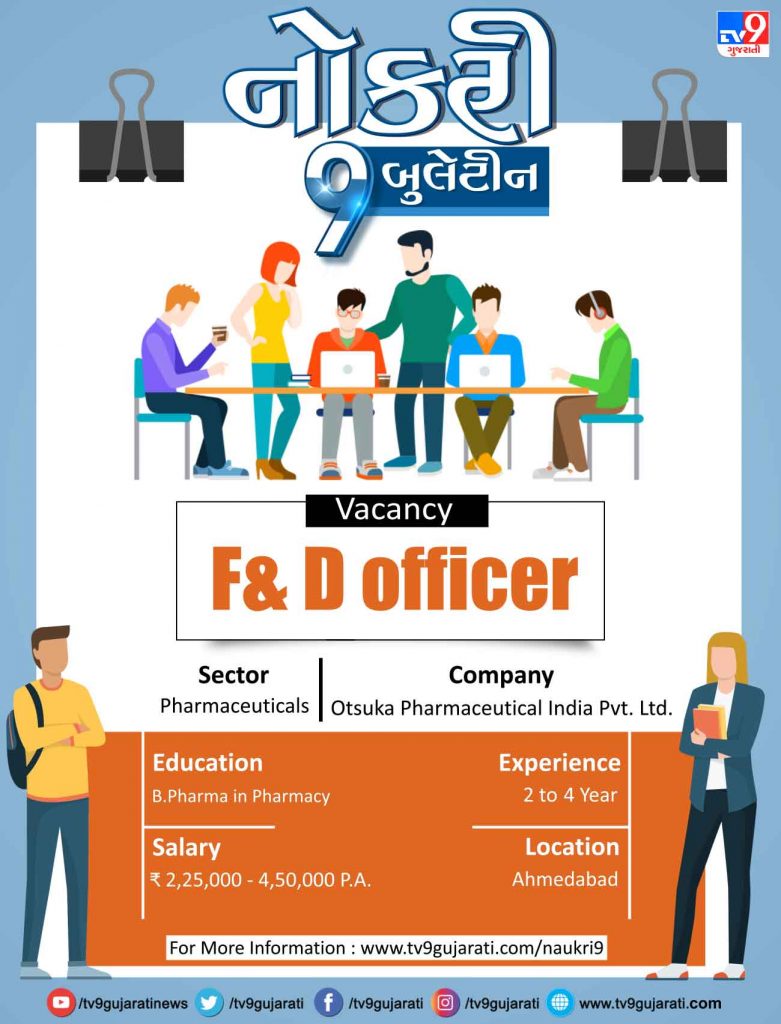 સ્નાતક થયેલા લોકો માટે નોકરીની ઉતમ તકો સર્જાઈ છે, ફાર્માસ્યુટિકલ્સ ક્ષેત્રે નોકરી શોધી રહેલા ઉમેદવારો આ લીંક પર ક્લિક કરો અને મેળવો પોતાના ક્ષેત્ર વિશેની નોકરીની વિગતો સાથે પગાર, લાયકાત અને ધારાધોરણ